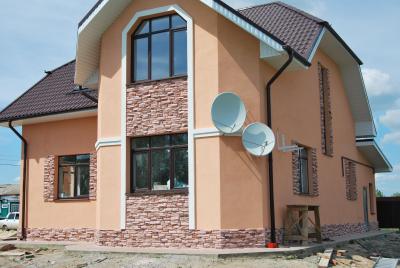 Штукатурка придает оригинальный вид фасаду также выполняет функцию защиты здания от атмосферных осадков, сохранения тепла в доме, повышения огнестойких качеств здания.